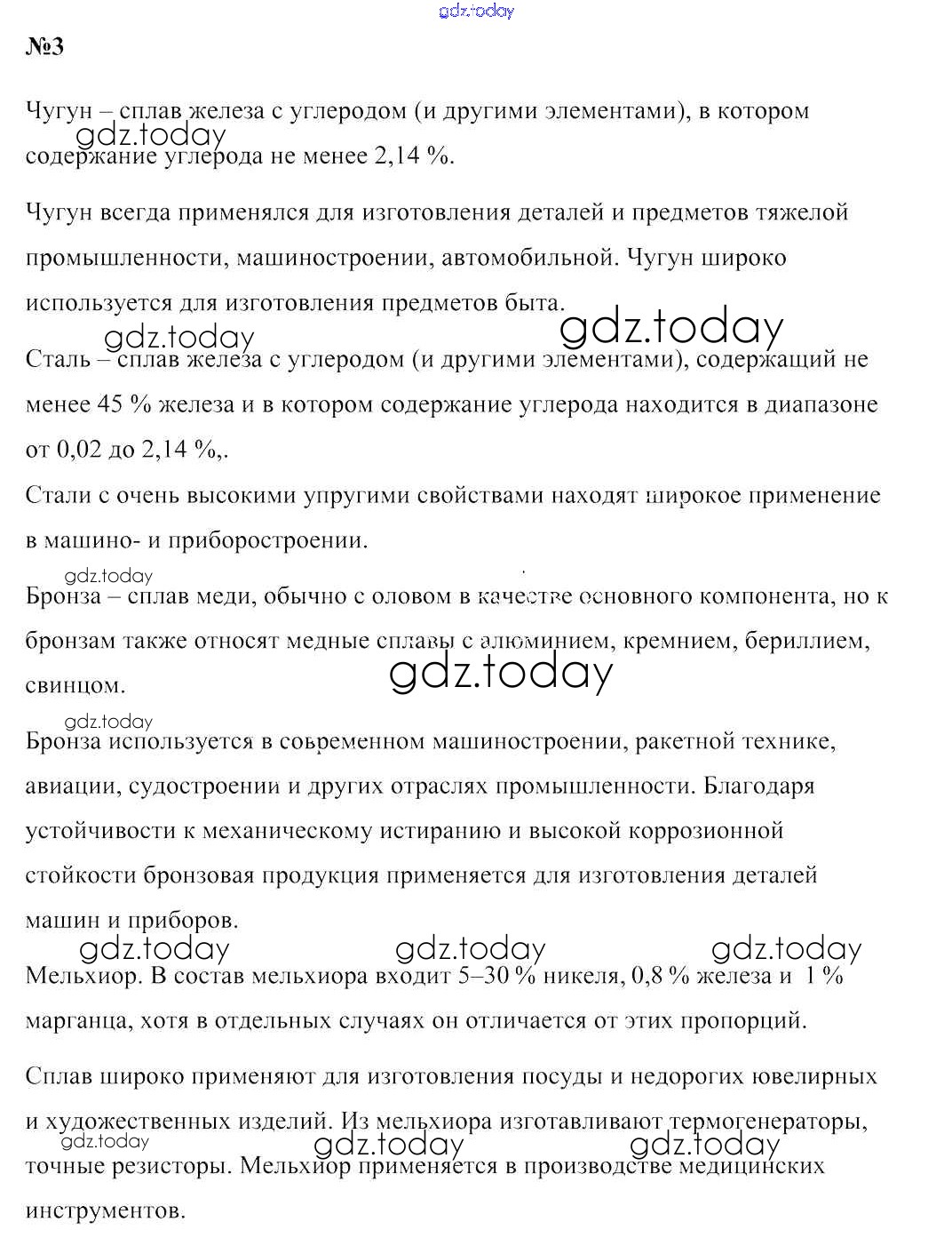 На страницах сайта gdz.today вы найдете учебный и вспомогательный материал, направленный на улучшения знаний школьной программы. ГДЗ - онлайн мир знаний Решение к §42. Сплавы металлов 3 Учебнику по Химии для 9 класса Шиманович, Василевская Народная асвета 2019