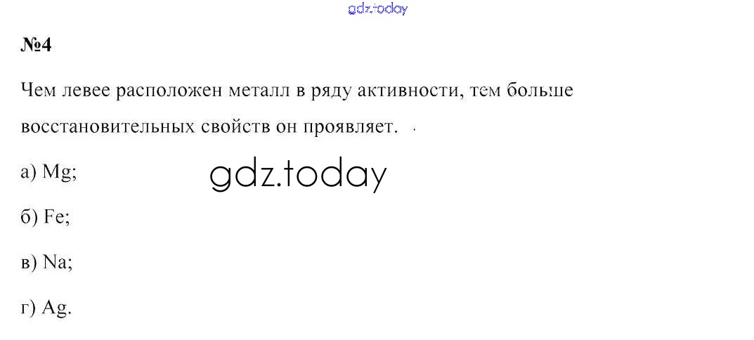 На страницах сайта gdz.today вы найдете учебный и вспомогательный материал, направленный на улучшения знаний школьной программы. ГДЗ - онлайн мир знаний Решение к §43. Ряд активности металлов. Взаимодействие металлов с растворами кислот 4 Учебнику по Химии для 9 класса Шиманович, Василевская Народная асвета 2019