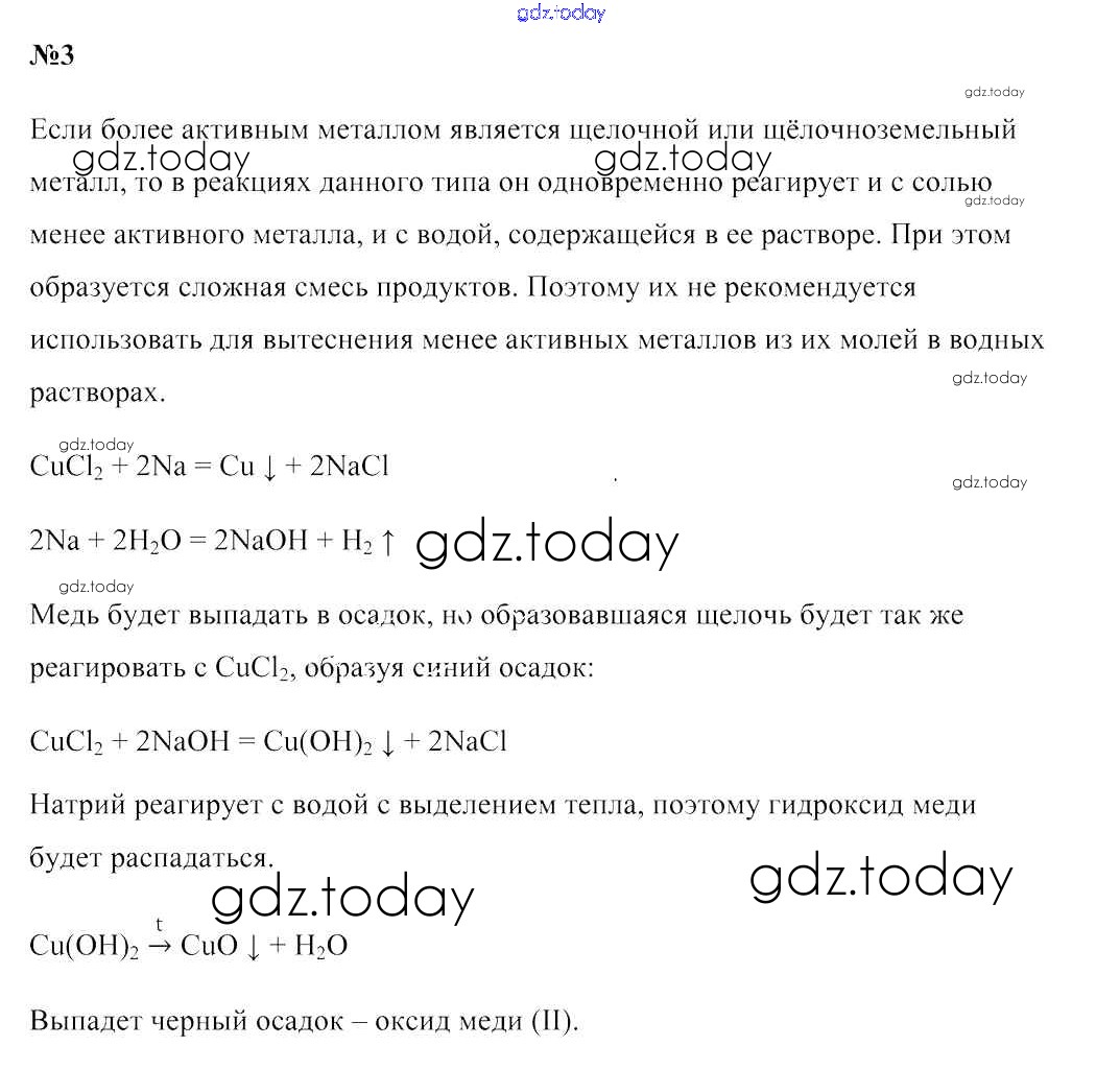 Ответы к Решение к §45. Взаимодействие металлов с водой и растворами солей других металлов 3 Учебнику по Химии для 9 класса Шиманович, Василевская Народная асвета 2019