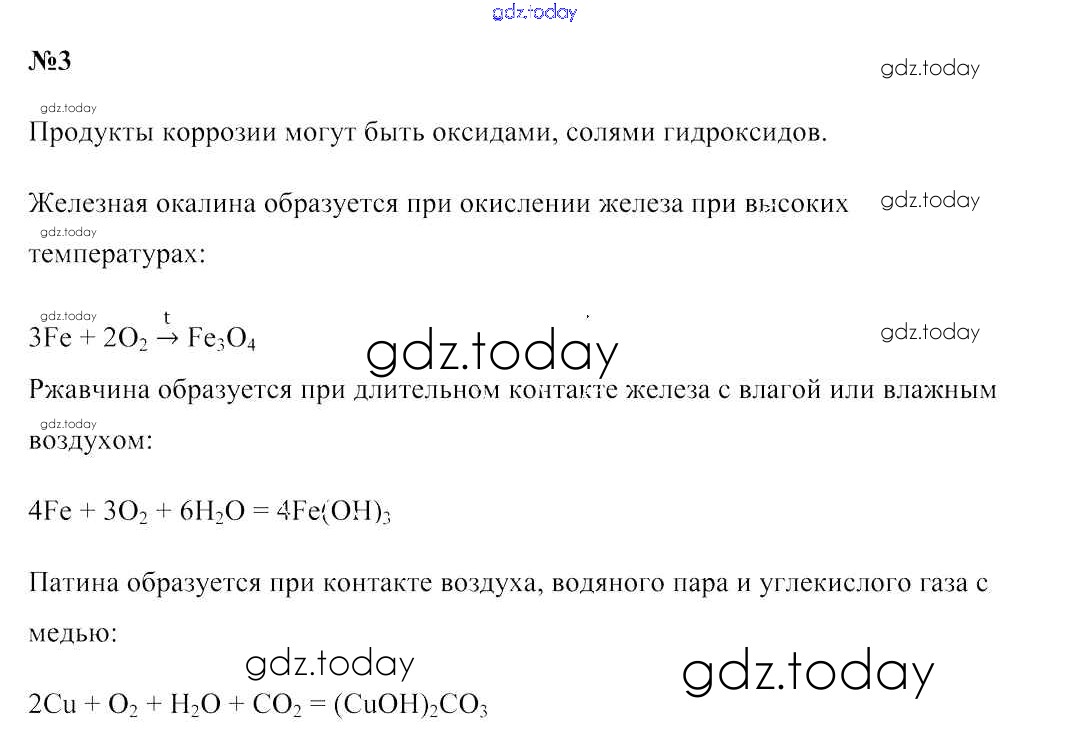 На страницах сайта gdz.today вы найдете учебный и вспомогательный материал, направленный на улучшения знаний школьной программы. ГДЗ - онлайн мир знаний Решение к §46. Коррозия металлов. Защита от коррозии 3 Учебнику по Химии для 9 класса Шиманович, Василевская Народная асвета 2019