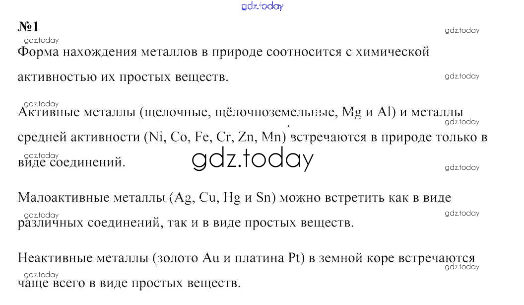 На страницах сайта gdz.today вы найдете учебный и вспомогательный материал, направленный на улучшения знаний школьной программы. ГДЗ - онлайн мир знаний Решение к §49. Металлы в природе. Биологическая роль металлов 1 Учебнику по Химии для 9 класса Шиманович, Василевская Народная асвета 2019