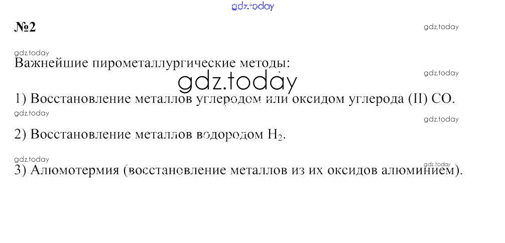 На страницах сайта gdz.today вы найдете учебный и вспомогательный материал, направленный на улучшения знаний школьной программы. ГДЗ - онлайн мир знаний Решение к §50. Химические способы получения металлов из их природных соединений 2 Учебнику по Химии для 9 класса Шиманович, Василевская Народная асвета 2019