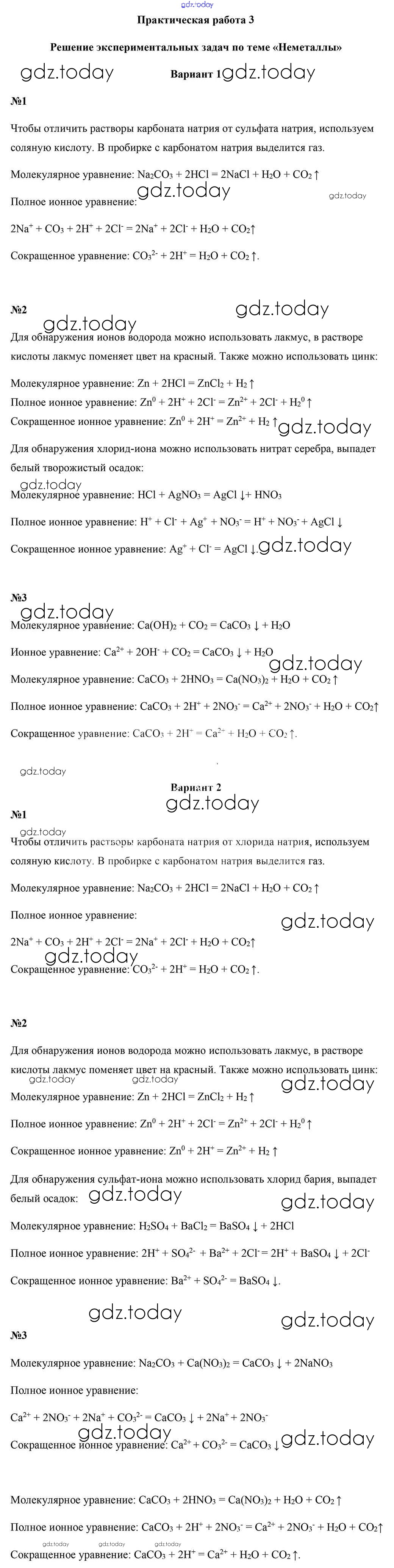Ответы к Решение к практическим работам 3 Учебнику по Химии для 9 класса Шиманович, Василевская Народная асвета 2019