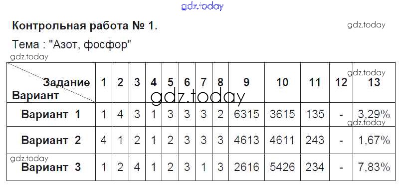 На страницах сайта gdz.today вы найдете учебный и вспомогательный материал, направленный на улучшения знаний школьной программы. ГДЗ - онлайн мир знаний Контрольные работы Решение к теме "Азот и фосфор" КР-1. Азот, фосфор Тестам по Химии для 9 класса Боровских Экзамен УМК 2013