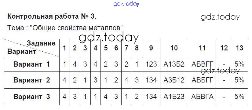 На страницах сайта gdz.today вы найдете учебный и вспомогательный материал, направленный на улучшения знаний школьной программы. ГДЗ - онлайн мир знаний Контрольные работы Решение к теме "Азот и фосфор" КР-3. Общие свойства металлов Тестам по Химии для 9 класса Боровских Экзамен УМК 2013
