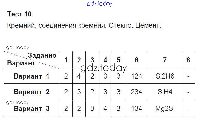 Ответы к Тесты Решение к теме "Азот и фосфор" Тест-10. Кремний, соединения кремния. Стекло. Цемент Тестам по Химии для 9 класса Боровских Экзамен УМК 2013