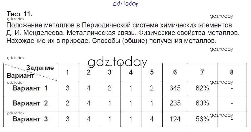 Ответы к Тесты Решение к теме "Азот и фосфор" Тест-11. Положение металлов в Периодической системе химических элементов Тестам по Химии для 9 класса Боровских Экзамен УМК 2013