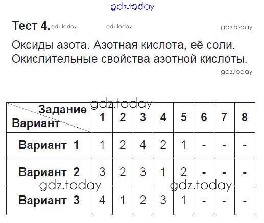 На страницах сайта gdz.today вы найдете учебный и вспомогательный материал, направленный на улучшения знаний школьной программы. ГДЗ - онлайн мир знаний Тесты Решение к теме "Азот и фосфор" Тест-4. Оксиды азота. Азотная кислота, её соли Тестам по Химии для 9 класса Боровских Экзамен УМК 2013