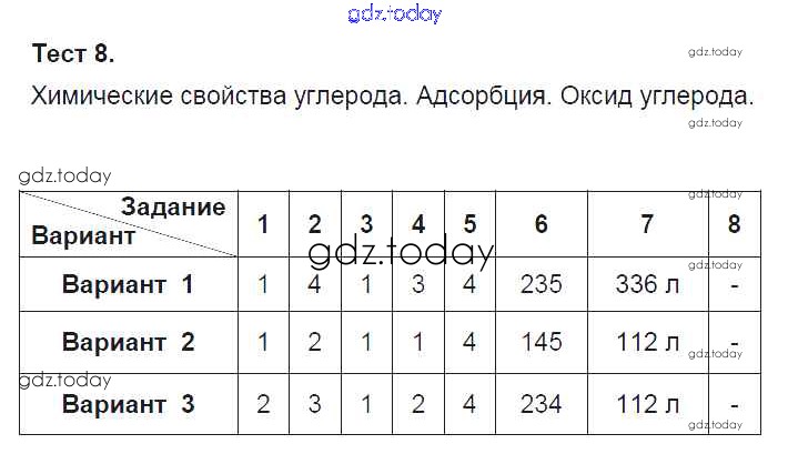 На страницах сайта gdz.today вы найдете учебный и вспомогательный материал, направленный на улучшения знаний школьной программы. ГДЗ - онлайн мир знаний Тесты Решение к теме "Азот и фосфор" Тест-8. Химические свойства углерода. Адсорбция. Оксид углерода Тестам по Химии для 9 класса Боровских Экзамен УМК 2013
