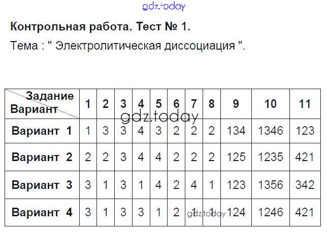На страницах сайта gdz.today вы найдете учебный и вспомогательный материал, направленный на улучшения знаний школьной программы. ГДЗ - онлайн мир знаний Контрольные работы Решение к теме "Электролитическая диссоциация" КР-1. Электролитическая диссоциация Тестам по Химии для 9 класса Боровских Экзамен УМК 2013
