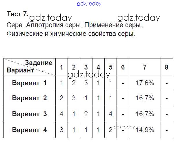 На страницах сайта gdz.today вы найдете учебный и вспомогательный материал, направленный на улучшения знаний школьной программы. ГДЗ - онлайн мир знаний Тесты Решение к теме "Электролитическая диссоциация" Тест-7. Сера. Аллотропия серы. Применение серы Тестам по Химии для 9 класса Боровских Экзамен УМК 2013