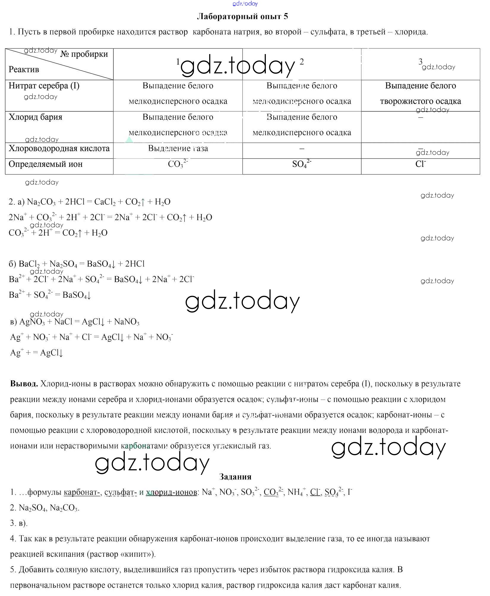 Ответы к Решение к лабораторные опытам 5 Тетради для практических работ и лабораторных опытов по Химии для 9 класса Сечко Аверсэв 2016