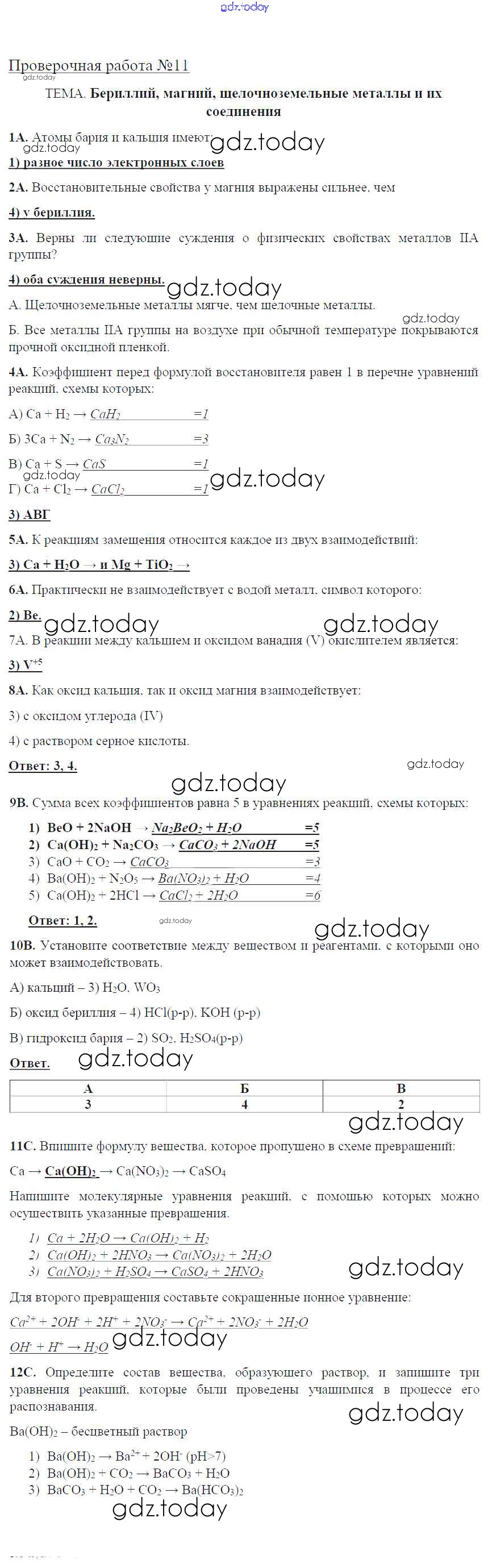 Ответы к Решение к проверочные работам ПР-11. Берилий, магний, щелочноземельные металлы и их свойства Тетради для оценки качества знаний по Химии для 9 класса Габриелян, Крупцова Дрофа Вертикаль 2017
