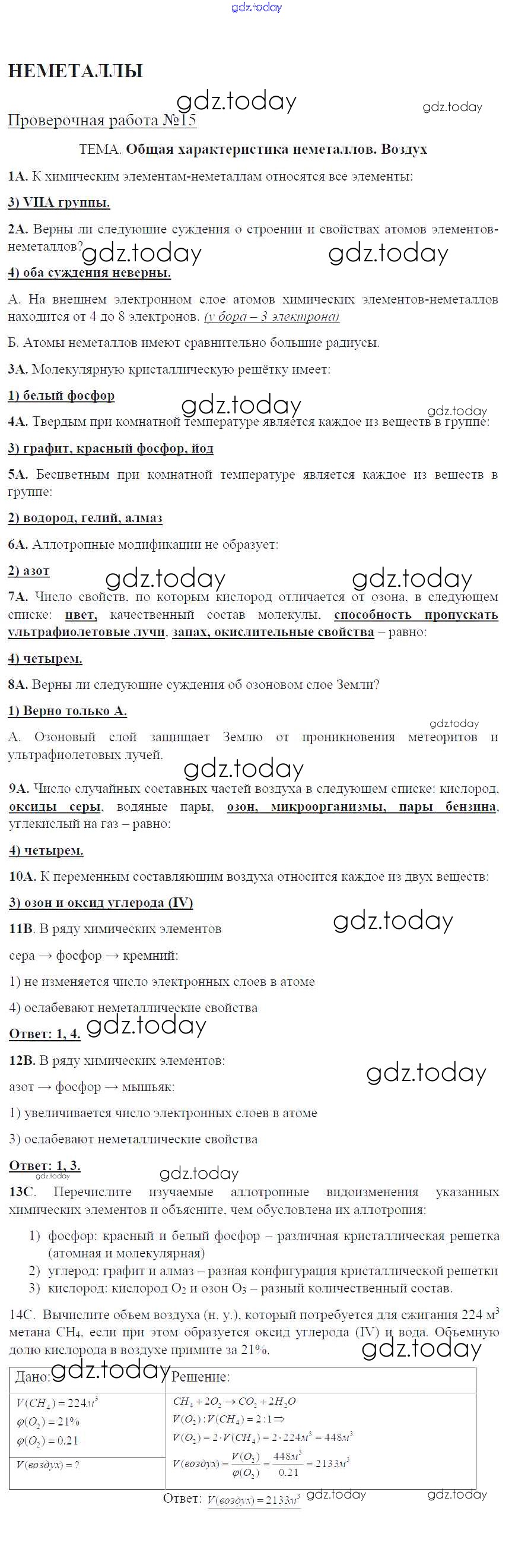 Ответы к Решение к проверочные работам ПР-15. Общая характеристика неметаллов. Воздух Тетради для оценки качества знаний по Химии для 9 класса Габриелян, Крупцова Дрофа Вертикаль 2017