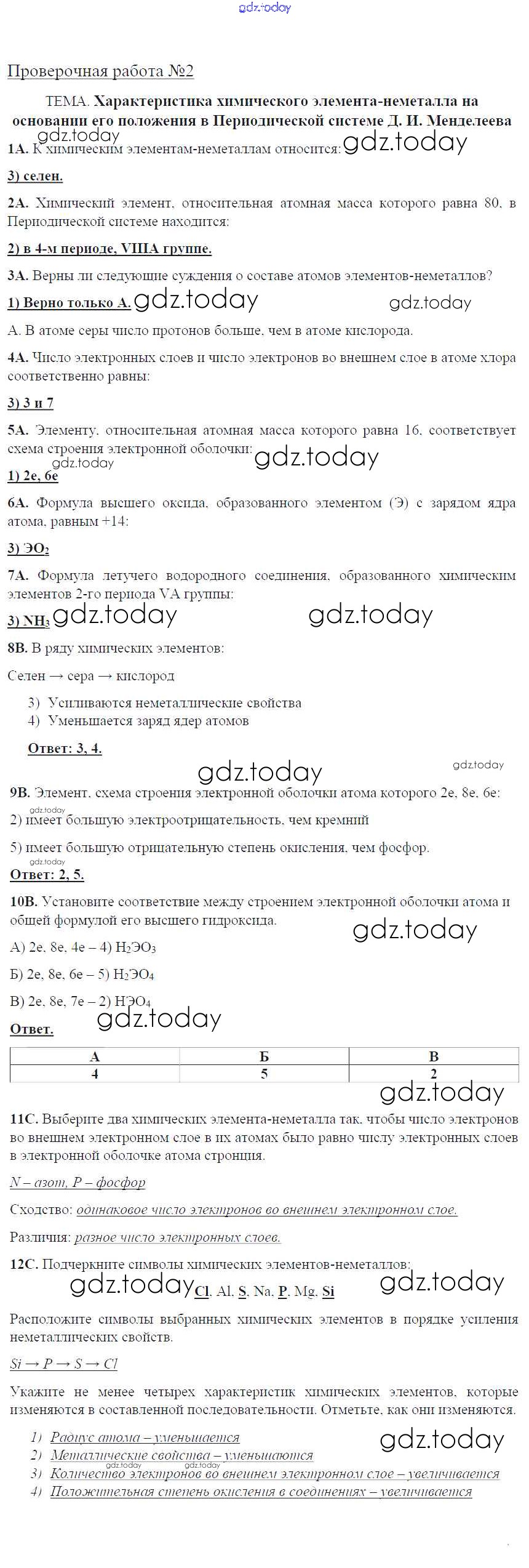 На страницах сайта gdz.today вы найдете учебный и вспомогательный материал, направленный на улучшения знаний школьной программы. ГДЗ - онлайн мир знаний Решение к проверочные работам ПР-2. Характеристика химического элемента-неметалла на основании его положения в системе Менделеева Тетради для оценки качества знаний по Химии для 9 класса Габриелян, Крупцова Дрофа Вертикаль 2017