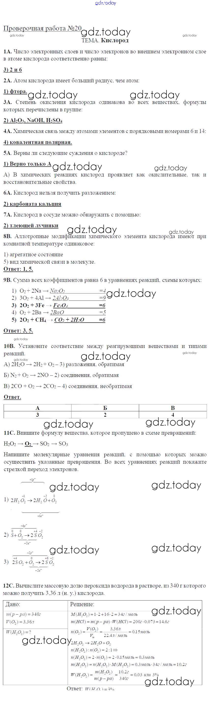 На страницах сайта gdz.today вы найдете учебный и вспомогательный материал, направленный на улучшения знаний школьной программы. ГДЗ - онлайн мир знаний Решение к проверочные работам ПР-20. Кислород Тетради для оценки качества знаний по Химии для 9 класса Габриелян, Крупцова Дрофа Вертикаль 2017