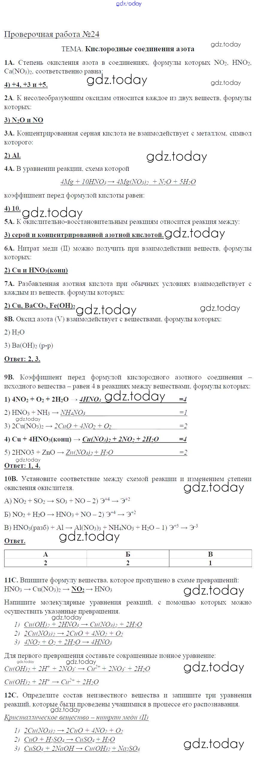 На страницах сайта gdz.today вы найдете учебный и вспомогательный материал, направленный на улучшения знаний школьной программы. ГДЗ - онлайн мир знаний Решение к проверочные работам ПР-24. Кислородные соединения азота Тетради для оценки качества знаний по Химии для 9 класса Габриелян, Крупцова Дрофа Вертикаль 2017