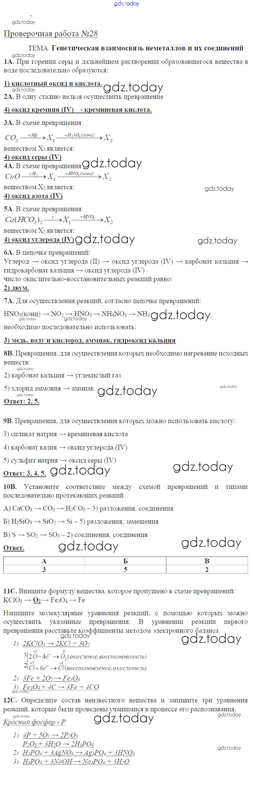 На страницах сайта gdz.today вы найдете учебный и вспомогательный материал, направленный на улучшения знаний школьной программы. ГДЗ - онлайн мир знаний Решение к проверочные работам ПР-28. Генетическая взаимосвязь неметаллов и их соединений Тетради для оценки качества знаний по Химии для 9 класса Габриелян, Крупцова Дрофа Вертикаль 2017