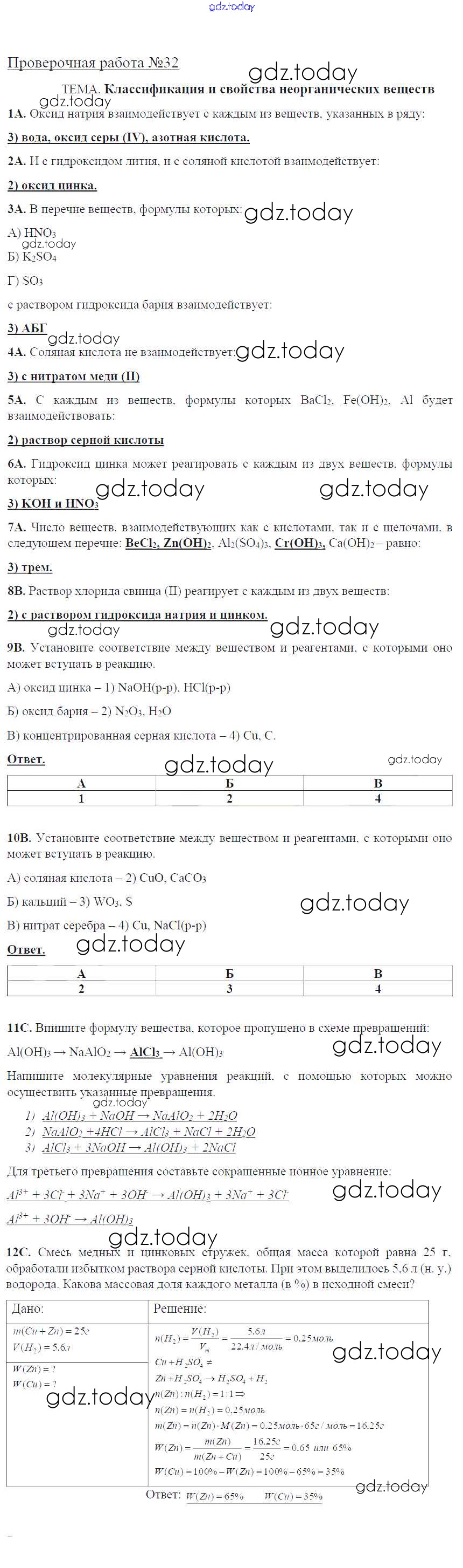 На страницах сайта gdz.today вы найдете учебный и вспомогательный материал, направленный на улучшения знаний школьной программы. ГДЗ - онлайн мир знаний Решение к проверочные работам ПР-32. Классификация и свойства неорганических веществ Тетради для оценки качества знаний по Химии для 9 класса Габриелян, Крупцова Дрофа Вертикаль 2017
