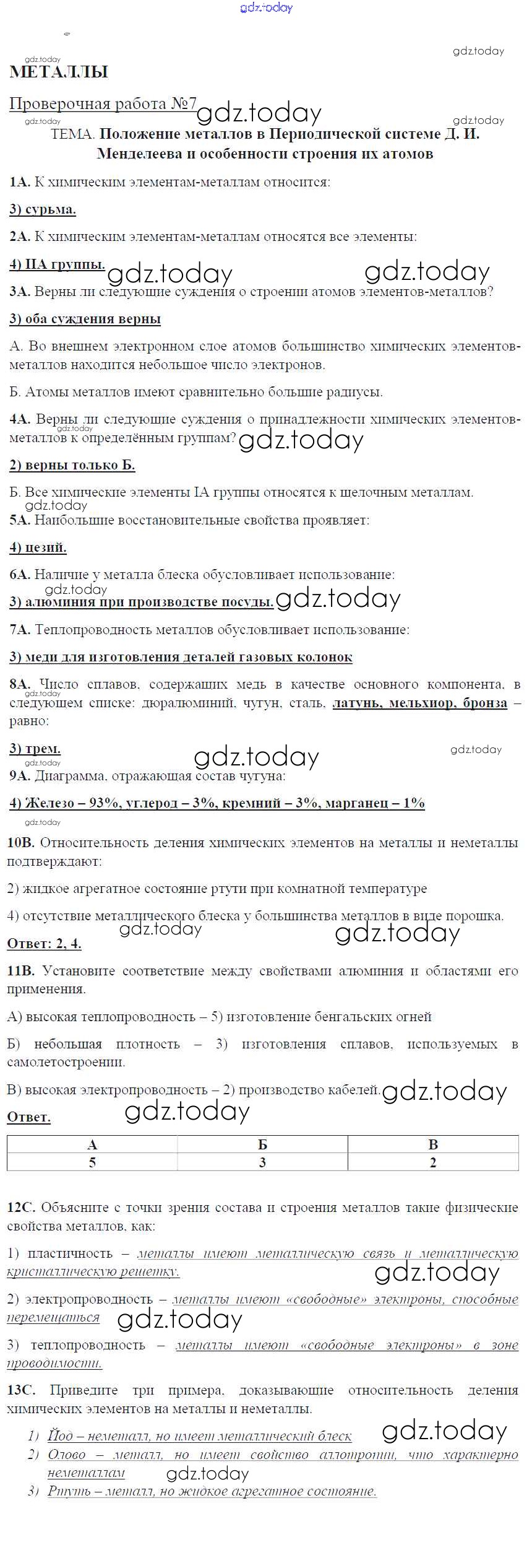 На страницах сайта gdz.today вы найдете учебный и вспомогательный материал, направленный на улучшения знаний школьной программы. ГДЗ - онлайн мир знаний Решение к проверочные работам ПР-7. Положение металлов в Периолической системе и особенности строения их атомов Тетради для оценки качества знаний по Химии для 9 класса Габриелян, Крупцова Дрофа Вертикаль 2017