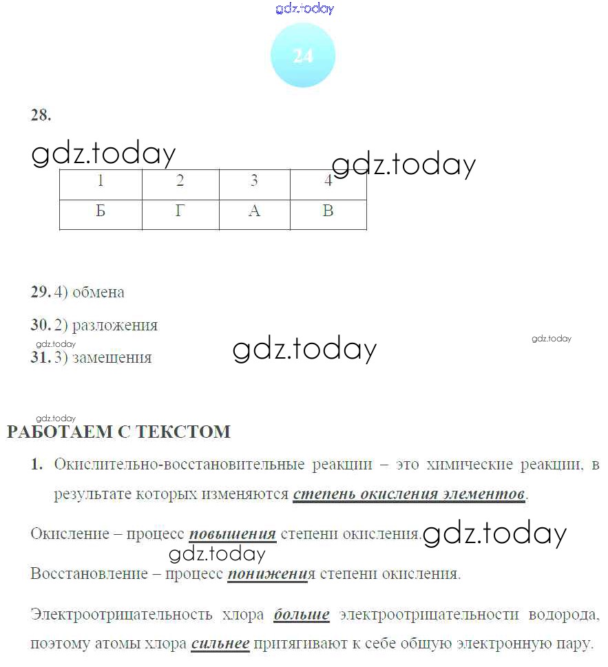На страницах сайта gdz.today вы найдете учебный и вспомогательный материал, направленный на улучшения знаний школьной программы. ГДЗ - онлайн мир знаний Страницы (решение) 24 Тетради-тренажеру по Химии для 9 класса Гара Просвещение Академический школьный учебник 2014