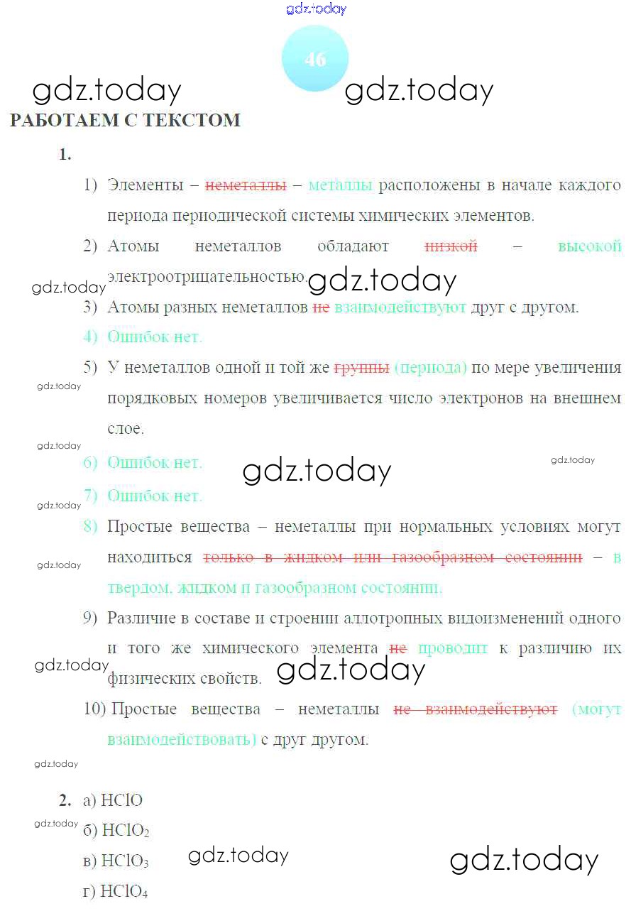 На страницах сайта gdz.today вы найдете учебный и вспомогательный материал, направленный на улучшения знаний школьной программы. ГДЗ - онлайн мир знаний Страницы (решение) 46 Тетради-тренажеру по Химии для 9 класса Гара Просвещение Академический школьный учебник 2014