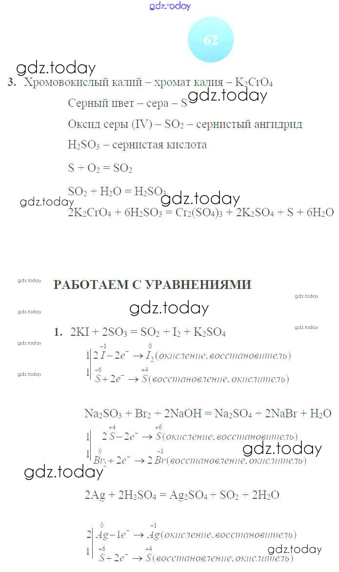 На страницах сайта gdz.today вы найдете учебный и вспомогательный материал, направленный на улучшения знаний школьной программы. ГДЗ - онлайн мир знаний Страницы (решение) 62 Тетради-тренажеру по Химии для 9 класса Гара Просвещение Академический школьный учебник 2014