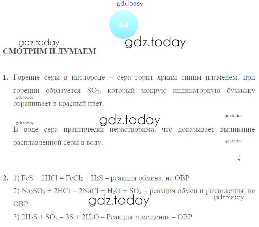 На страницах сайта gdz.today вы найдете учебный и вспомогательный материал, направленный на улучшения знаний школьной программы. ГДЗ - онлайн мир знаний Страницы (решение) 64 Тетради-тренажеру по Химии для 9 класса Гара Просвещение Академический школьный учебник 2014