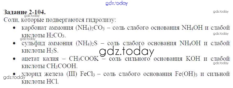 На страницах сайта gdz.today вы найдете учебный и вспомогательный материал, направленный на улучшения знаний школьной программы. ГДЗ - онлайн мир знаний Решение к главе №2. Теория электрической диссоциации 2-104 Задачнику по Химии для 9 класса Кузнецова, Левкин Вентана-граф Алгоритм успеха 2015