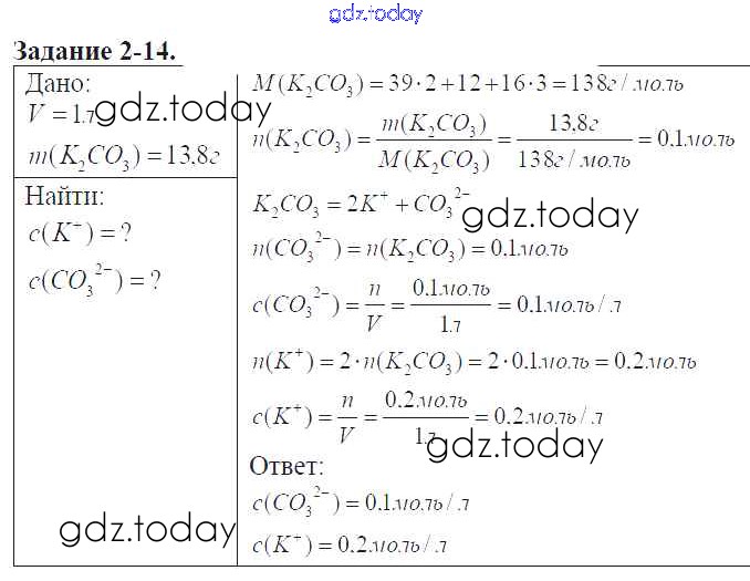 На страницах сайта gdz.today вы найдете учебный и вспомогательный материал, направленный на улучшения знаний школьной программы. ГДЗ - онлайн мир знаний Решение к главе №2. Теория электрической диссоциации 2-14 Задачнику по Химии для 9 класса Кузнецова, Левкин Вентана-граф Алгоритм успеха 2015