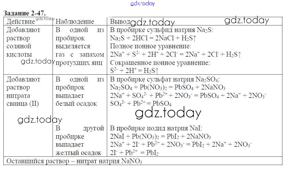 На страницах сайта gdz.today вы найдете учебный и вспомогательный материал, направленный на улучшения знаний школьной программы. ГДЗ - онлайн мир знаний Решение к главе №2. Теория электрической диссоциации 2-47 Задачнику по Химии для 9 класса Кузнецова, Левкин Вентана-граф Алгоритм успеха 2015
