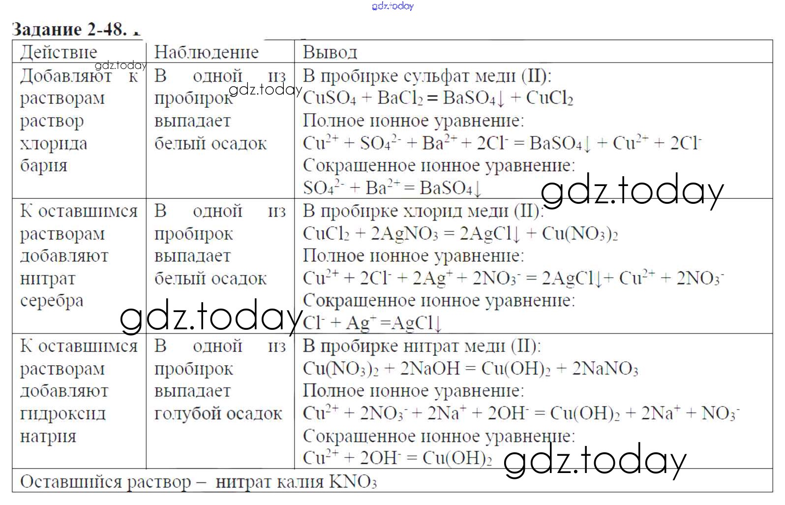 На страницах сайта gdz.today вы найдете учебный и вспомогательный материал, направленный на улучшения знаний школьной программы. ГДЗ - онлайн мир знаний Решение к главе №2. Теория электрической диссоциации 2-48 Задачнику по Химии для 9 класса Кузнецова, Левкин Вентана-граф Алгоритм успеха 2015