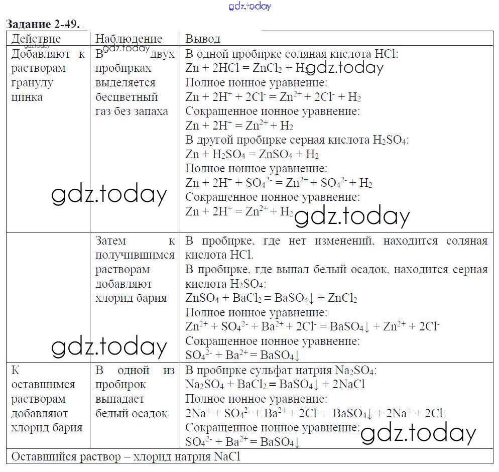 На страницах сайта gdz.today вы найдете учебный и вспомогательный материал, направленный на улучшения знаний школьной программы. ГДЗ - онлайн мир знаний Решение к главе №2. Теория электрической диссоциации 2-49 Задачнику по Химии для 9 класса Кузнецова, Левкин Вентана-граф Алгоритм успеха 2015