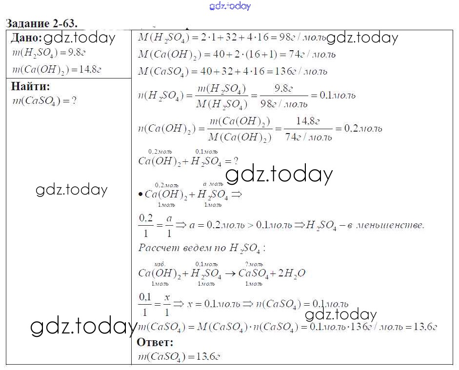 На страницах сайта gdz.today вы найдете учебный и вспомогательный материал, направленный на улучшения знаний школьной программы. ГДЗ - онлайн мир знаний Решение к главе №2. Теория электрической диссоциации 2-63 Задачнику по Химии для 9 класса Кузнецова, Левкин Вентана-граф Алгоритм успеха 2015