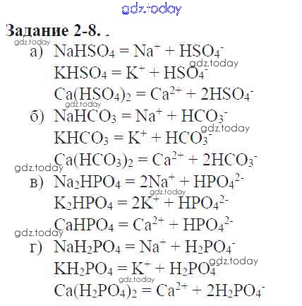 На страницах сайта gdz.today вы найдете учебный и вспомогательный материал, направленный на улучшения знаний школьной программы. ГДЗ - онлайн мир знаний Решение к главе №2. Теория электрической диссоциации 2-8 Задачнику по Химии для 9 класса Кузнецова, Левкин Вентана-граф Алгоритм успеха 2015
