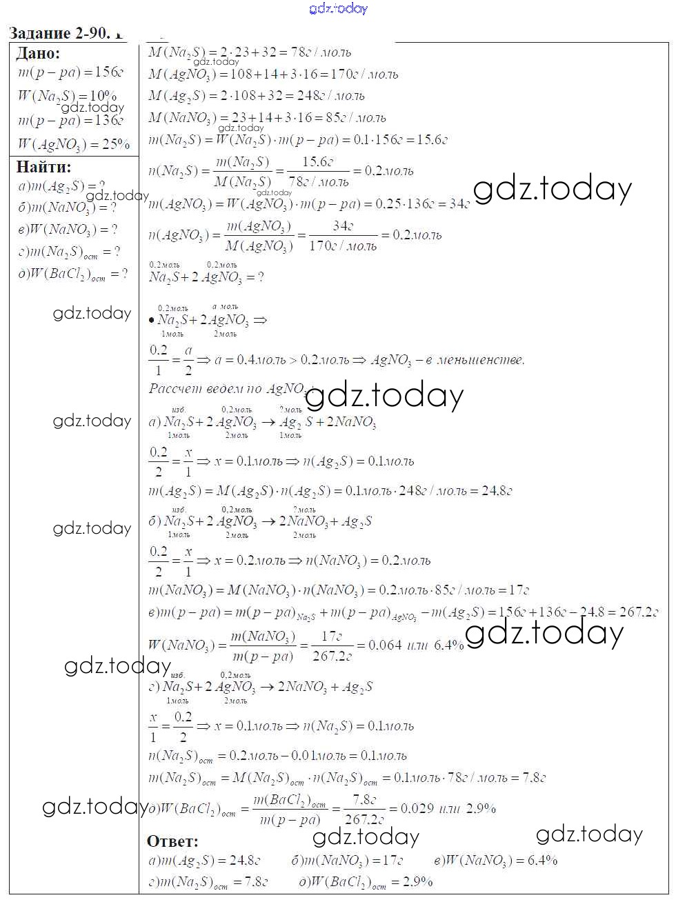На страницах сайта gdz.today вы найдете учебный и вспомогательный материал, направленный на улучшения знаний школьной программы. ГДЗ - онлайн мир знаний Решение к главе №2. Теория электрической диссоциации 2-90 Задачнику по Химии для 9 класса Кузнецова, Левкин Вентана-граф Алгоритм успеха 2015