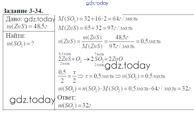Ответы к Решение к главе №3. Сера. Соединения серы 3-34 Задачнику по Химии для 9 класса Кузнецова, Левкин Вентана-граф Алгоритм успеха 2015