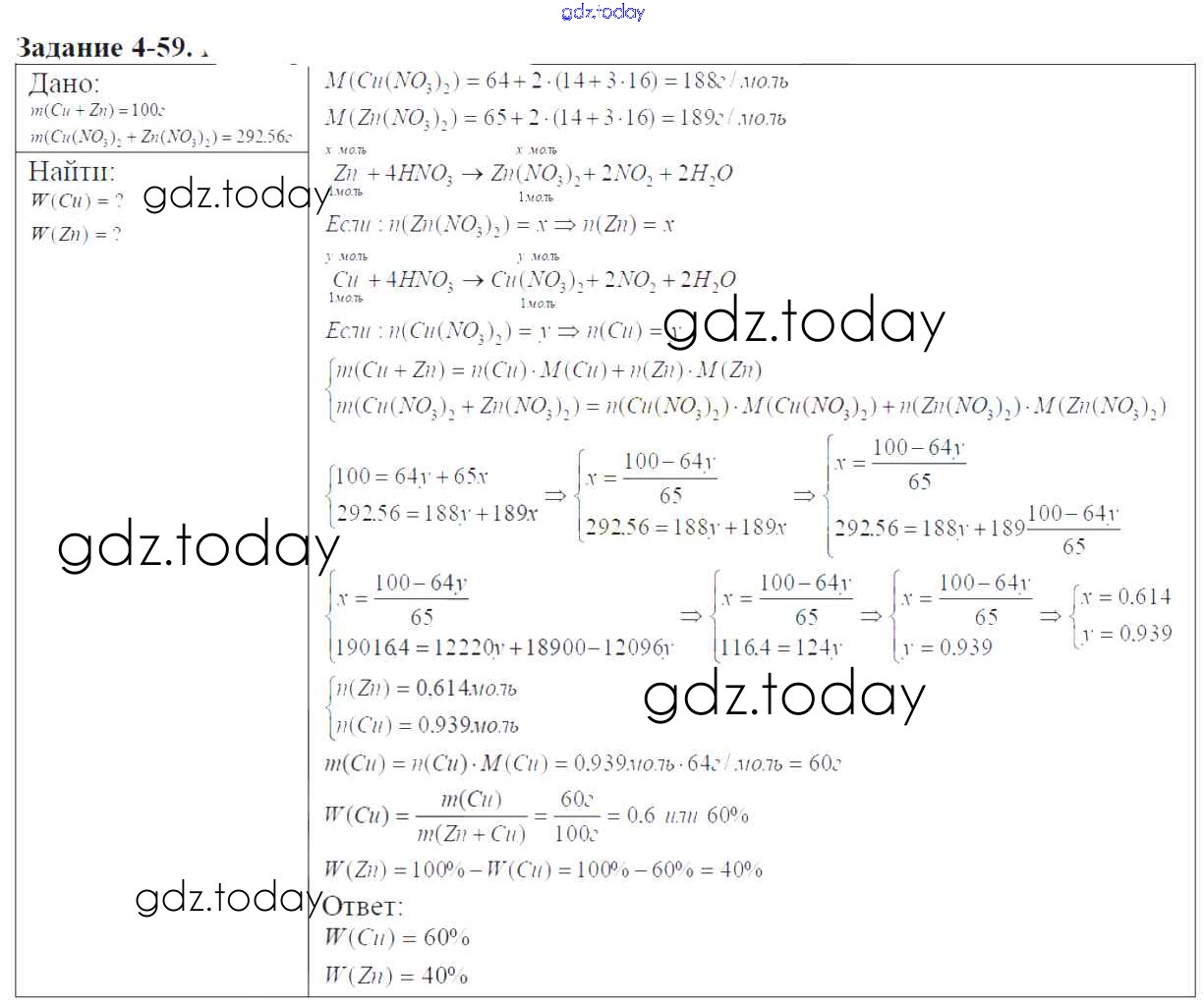На страницах сайта gdz.today вы найдете учебный и вспомогательный материал, направленный на улучшения знаний школьной программы. ГДЗ - онлайн мир знаний Решение к главе №4. Азот. Соединения азота 4-59 Задачнику по Химии для 9 класса Кузнецова, Левкин Вентана-граф Алгоритм успеха 2015