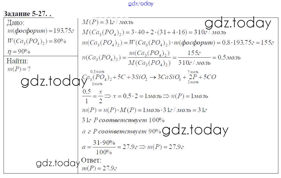На страницах сайта gdz.today вы найдете учебный и вспомогательный материал, направленный на улучшения знаний школьной программы. ГДЗ - онлайн мир знаний Решение к главе №5. Фосфор. Соединения фосфора 5-27 Задачнику по Химии для 9 класса Кузнецова, Левкин Вентана-граф Алгоритм успеха 2015