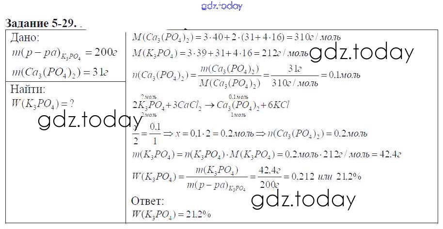 Ответы к Решение к главе №5. Фосфор. Соединения фосфора 5-29 Задачнику по Химии для 9 класса Кузнецова, Левкин Вентана-граф Алгоритм успеха 2015