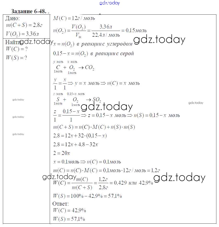 На страницах сайта gdz.today вы найдете учебный и вспомогательный материал, направленный на улучшения знаний школьной программы. ГДЗ - онлайн мир знаний Решение к главе №6. Углерод и кремний 6-48 Задачнику по Химии для 9 класса Кузнецова, Левкин Вентана-граф Алгоритм успеха 2015
