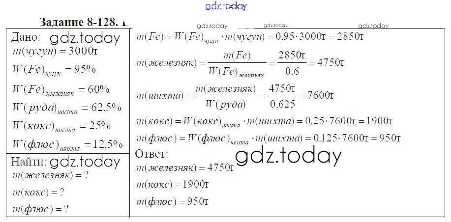 Ответы к Решение к главе №8. Металлы 8-128 Задачнику по Химии для 9 класса Кузнецова, Левкин Вентана-граф Алгоритм успеха 2015