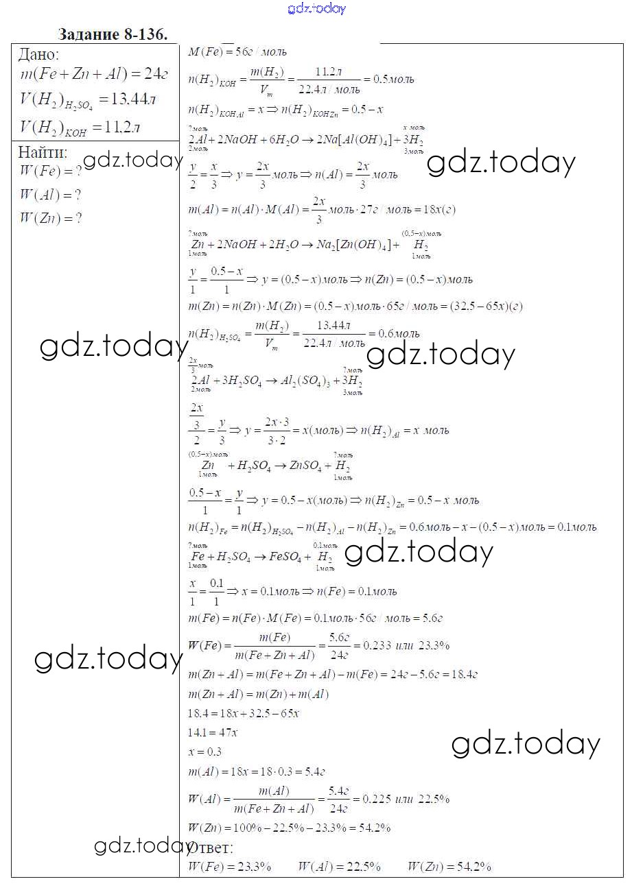 На страницах сайта gdz.today вы найдете учебный и вспомогательный материал, направленный на улучшения знаний школьной программы. ГДЗ - онлайн мир знаний Решение к главе №8. Металлы 8-136 Задачнику по Химии для 9 класса Кузнецова, Левкин Вентана-граф Алгоритм успеха 2015