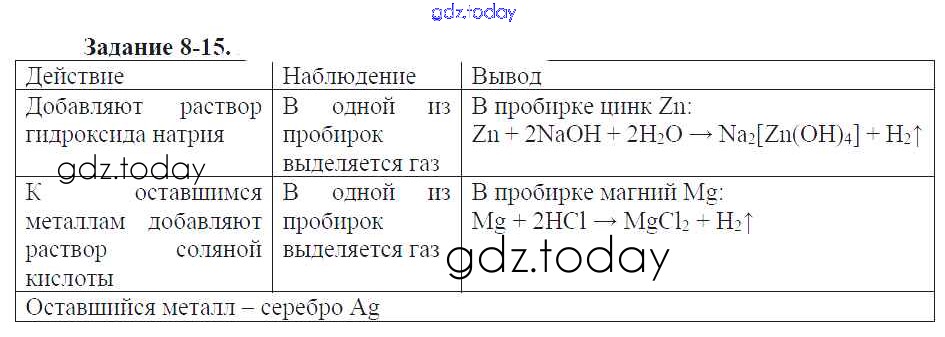 На страницах сайта gdz.today вы найдете учебный и вспомогательный материал, направленный на улучшения знаний школьной программы. ГДЗ - онлайн мир знаний Решение к главе №8. Металлы 8-15 Задачнику по Химии для 9 класса Кузнецова, Левкин Вентана-граф Алгоритм успеха 2015