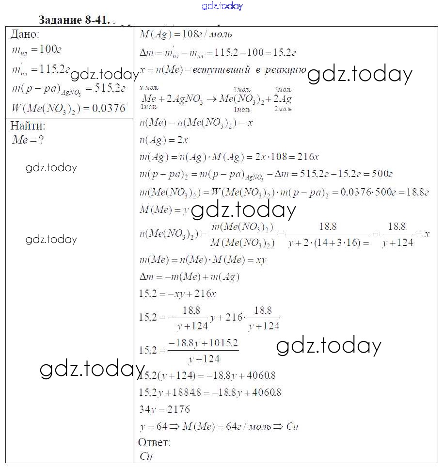 На страницах сайта gdz.today вы найдете учебный и вспомогательный материал, направленный на улучшения знаний школьной программы. ГДЗ - онлайн мир знаний Решение к главе №8. Металлы 8-41 Задачнику по Химии для 9 класса Кузнецова, Левкин Вентана-граф Алгоритм успеха 2015