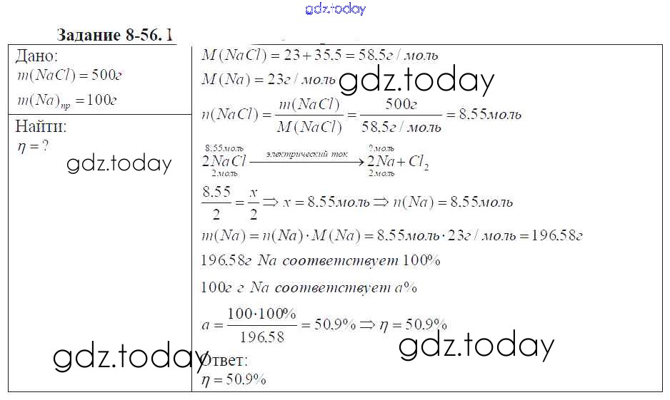 Ответы к Решение к главе №8. Металлы 8-56 Задачнику по Химии для 9 класса Кузнецова, Левкин Вентана-граф Алгоритм успеха 2015