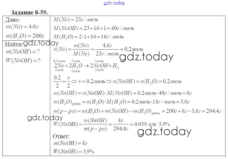 Ответы к Решение к главе №8. Металлы 8-59 Задачнику по Химии для 9 класса Кузнецова, Левкин Вентана-граф Алгоритм успеха 2015