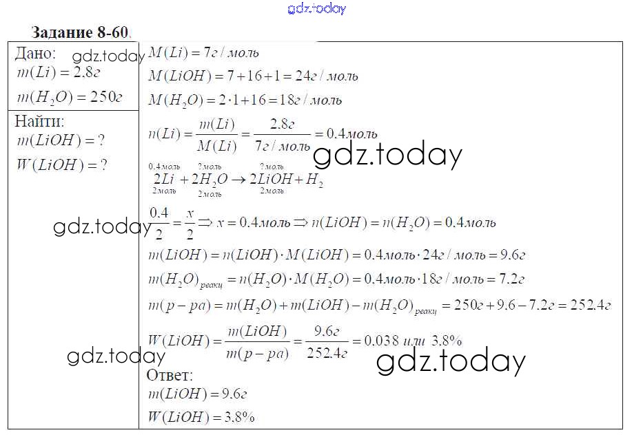 Ответы к Решение к главе №8. Металлы 8-60 Задачнику по Химии для 9 класса Кузнецова, Левкин Вентана-граф Алгоритм успеха 2015