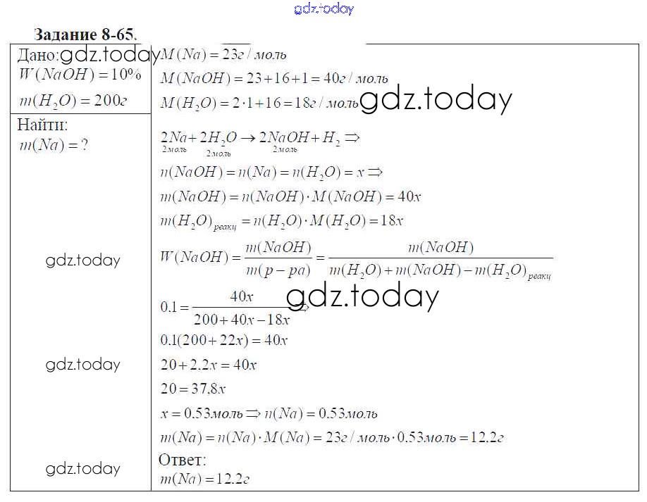 На страницах сайта gdz.today вы найдете учебный и вспомогательный материал, направленный на улучшения знаний школьной программы. ГДЗ - онлайн мир знаний Решение к главе №8. Металлы 8-65 Задачнику по Химии для 9 класса Кузнецова, Левкин Вентана-граф Алгоритм успеха 2015