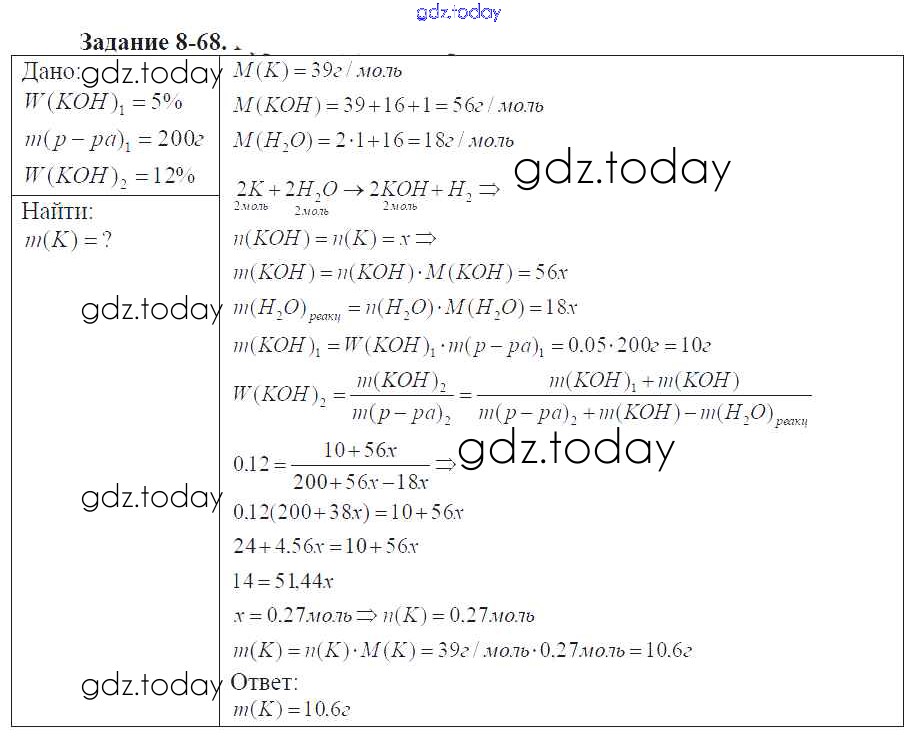 Ответы к Решение к главе №8. Металлы 8-68 Задачнику по Химии для 9 класса Кузнецова, Левкин Вентана-граф Алгоритм успеха 2015